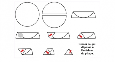 Couper les feuilles de brick en deux puis former des bandes. (Voir schéma ci-dessous)